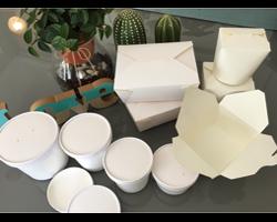 bio- take out boxes & paper soup cups